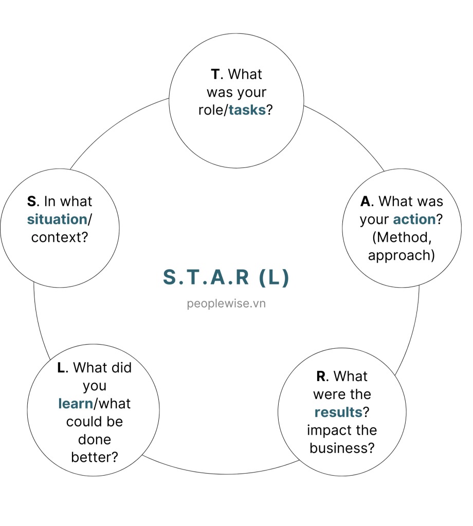 Với mỗi câu trả lời theo phương pháp STAR, bạn có thể tìm hiểu những tình huống thực tế đã xảy ra trong kinh nghiệm trước đây của ứng viên. Điều này cho phép bạn xác định một hoặc nhiều năng lực mà bạn đang nhắm đến. Hãy kiên nhẫn và tập trung vào các câu hỏi tình huống, vì điều này sẽ giúp bạn khám phá ra những năng lực mà vị trí đó yêu cầu.
